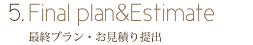 併せて概算でのお見積書もご提出致します。初回にご提出したプランに基づいて、各仕様や材料などの詳細な打合せを行って参ります。 どんなに細かい事でも担当者まで、ご希望をぶつけて下さい。